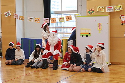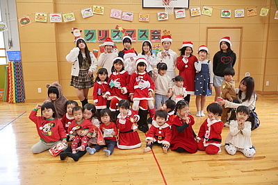 最後はメインイベント「サンタさん登場」です!サンタさんさんからクリスマスプレゼントをもらい、一緒に写真も撮りました。子ども達の笑顔と歓声がはじける楽しいクリスマス会となりました!