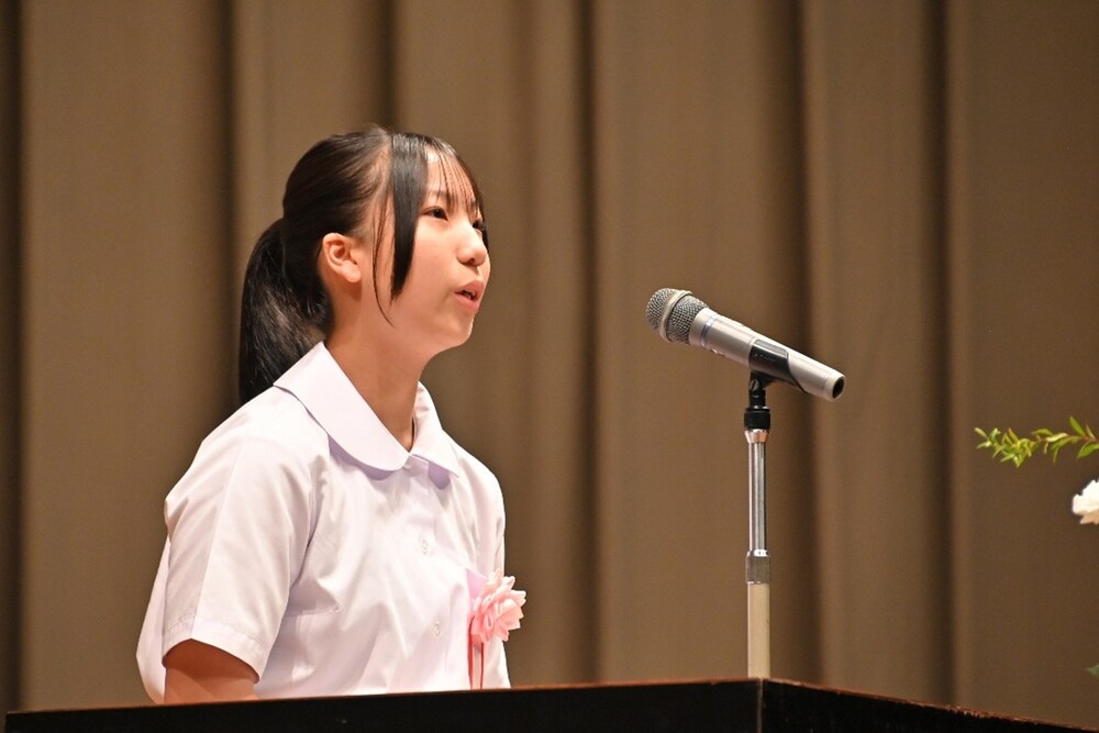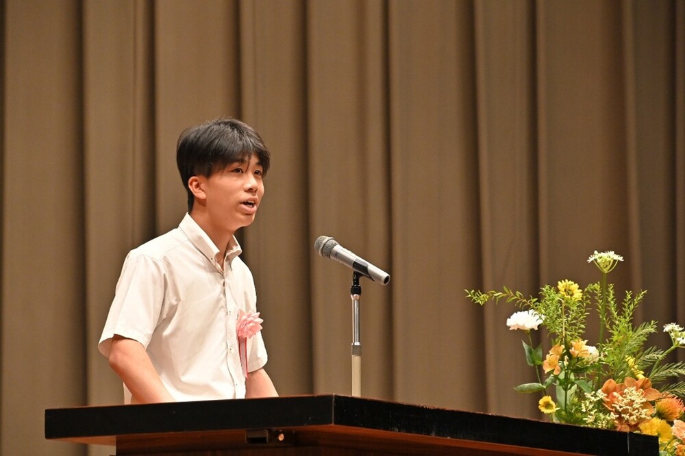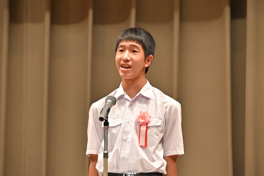 私は、今、生徒会長を務めています。友達は「仁太、仁太」と気軽に声をかけてくれます。「仁太ならできるじゃろー」とも言ってくれます。こうして、今、私が楽しく生活できているのも、全ては彼がかけてくれた言葉のおかげです。次は私の番です。彼が私を救ってくれたように、今度は私が、何かに困ったり悩んだりしている人を救いたいです。そして、伝えたいです。「自分の気持ちに嘘をつかないで。苦しいときは苦しいと言ったほうがいいよ。私があなたの思いを受け止めるから。」と。