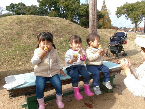 焼きあがったお芋をみんなで楽しみ、ついでにミカンも焼いて焼きミカンをたのしんだりと、最近の急な気温の下がりを埋めるようにポカポカと温まりながら楽しんだ半日でした。