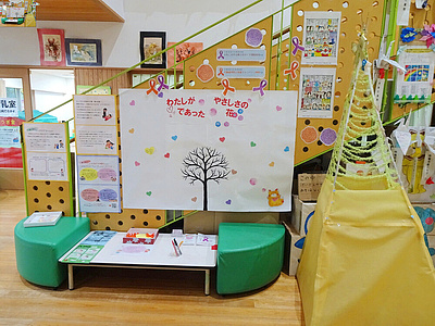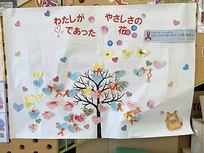 みんながだれかにやさしくしたり、やさしくされたと思った瞬間、またはやさしい気持ちになったことなどを書いて貼っていってみよう。