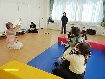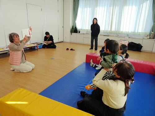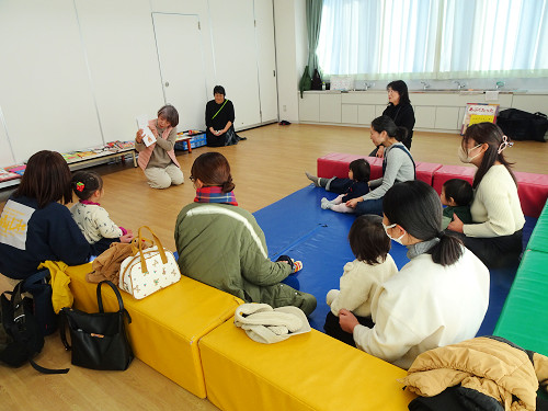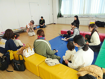 今回は、お話の出前ジョイントネット萩「草の芽」の皆さんをお招きして、いろいろな絵本の読み聞かせや、年齢発達に応じたおススメの絵本の紹介、お母さんたちに教える読み聞かせのコツ&実践などをしていただきました。
